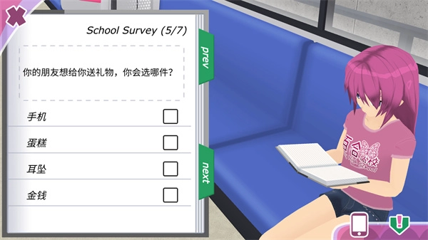座位上有一个书本,点击一下,然后回答几个问题。