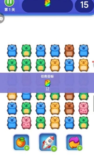1、软萌可爱的视觉风格自带亲和力,画面色彩鲜亮活泼,角色形象软乎乎的十分讨喜,让消除玩法多了几分治愈感和观赏性。