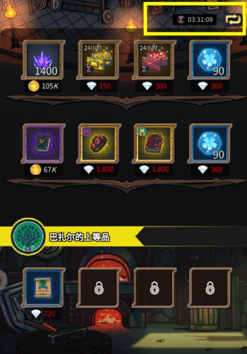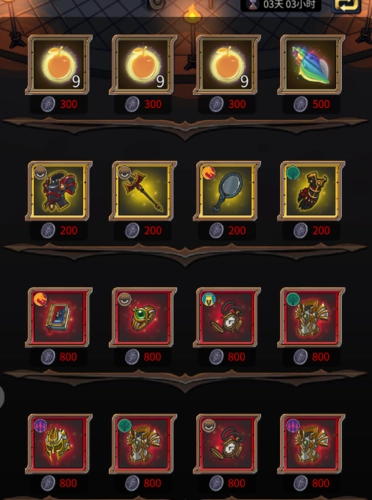 杂货商店:在杂货商店里,你可以用宝石和金币购买所需的道具,像升级需要的资源和装备等,每个物品只能购买一次,每天可以手动刷新一次页面上的道具。
